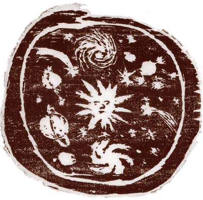 Wilek Markiewicz, Ouroboros pożerający własny ogon, symbol wieczystości obejmującej kosmos, drzeworyt.