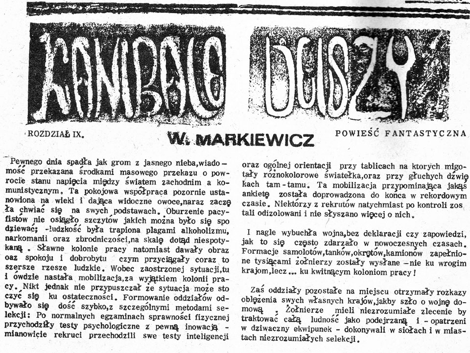 “Kanibale duszy” ukazaly sie w poczatkach istnienia Kuriera polsko — kanadyjskiego. Wiele lat pozniej, gdy KPK zmienil nazwe i przestal byc moim, zamiescilem go ponownie i zostal OCHYDNIE ZNIEKSZTALCONY. Moj protest ukazal sie w Zwiazkowcu, jako ze nigdy podobnych glupstw bym nie napisal po polsku i Zwiazkowiec, mimo ze nie mial z tym nic wspolnego, sie odniosl z sympatia do mojego protestu i zamiescil. Chcialem Kanibale, te oryginalne, zamiescic na Stronie Wilka, lecz numery KPK poszly do Torunia i do Jagiellonki. Znalazlem u siebie dwa ostatnie rozdzialy, dla mnie najwazniejsze, bo zawieraja kulminacje historii. Zamieszczam je niniejszym na Stronie Wilka. Zainteresowanych caloscia odsylam do Vagabond Pages, znajda oczywiscie po angielsku (WM).