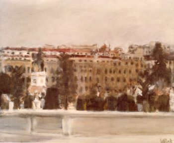 Pewnego dnia stałem przy sztaludze na Plaza de Oriente, tuż obok pałacu królewskiego, pochłonięty pejzażem. W pewnej chwili natarczywy szturchaniec zmusił mnie do odwrócenia głowy. Ujrzałem przed sobą starszą, zaniedbaną kobietę, brzydką, o okrągłej twarzy i spojrzeniu bez wyrazu. Przeprosiła mnie za nie chcące potrącenie. Chciałem malować dalej, lecz ona, uważając widać znajomość za zawartą, zaczęła pogawędkę.